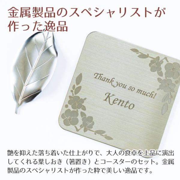 名入れ コースター 箸置き プレゼント ギフト ステンレス 名入れコースター & ステンレス葉しおき 燕粋 ensui UL 誕生日プレゼント 敬老の日