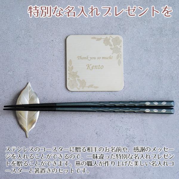 名入れ コースター 箸置き 若狭塗橋 プレゼント ギフト ステンレス 名入れコースター & ステンレス葉しおき & 若狭塗箸 燕粋 ensui UL 還暦祝い