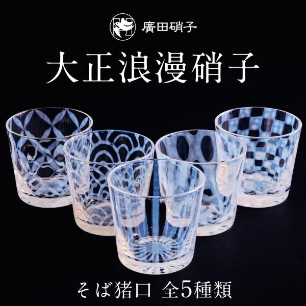 大正浪漫 そば猪口 廣田硝子 全5種類 市松 水玉 十草 波 つなぎ格子 そば猪口 ロックグラス 冷酒 冷茶 そばちょこ ギフト 日本製 伝統工芸 大正ロマン 職人