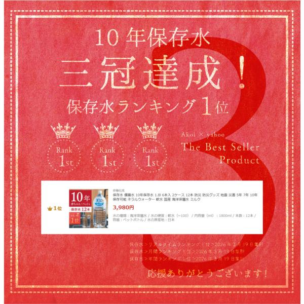 10年保存水 1.8L 12本(6本×2ケース)保存水 備蓄水 非常用水 防災 災害対策 長期保存 ミネラルウォーター 国産 純水 赤ちゃん ミルク対応
