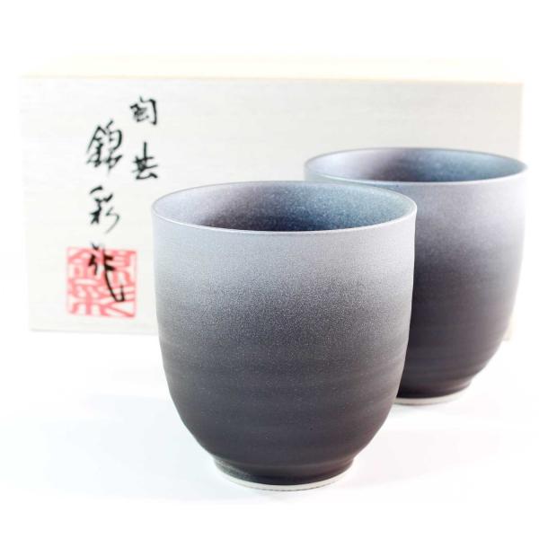 有田焼 陶芸家 藤井錦彩作 窯変プラチナ彩湯呑みペアセットD