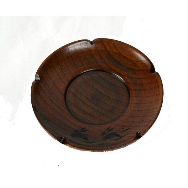 木製 4.0茶托 梅型 うさぎ彫 うるし塗 001-583