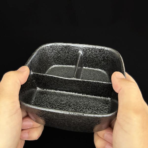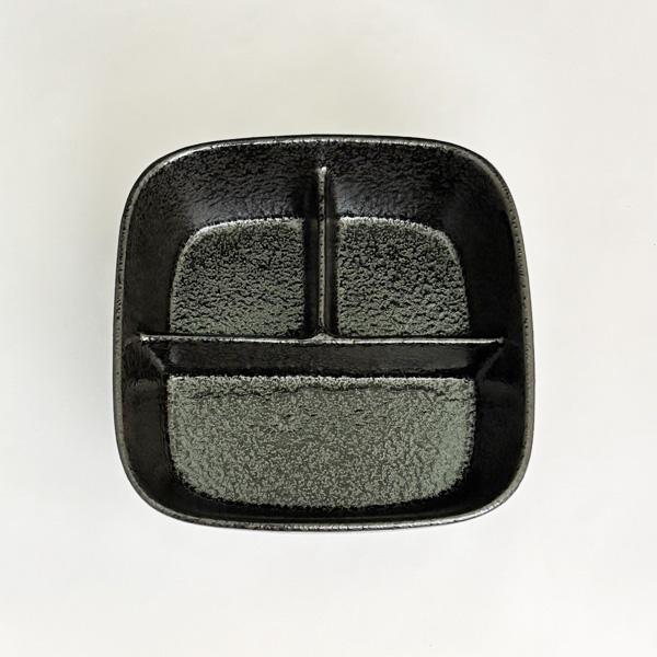 【黒結晶】3つ仕切りディープランチ 食器 黒 子供食器 陶器 お子様ランチプレート 離乳食 仕切り鉢 仕切り皿 三つ仕切り