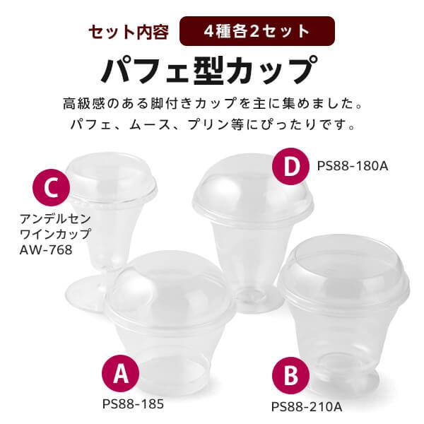 「サンプルセット:パフェ型カップセット」パフェ 容器 デザートカップ 使い捨て カップ テイクアウト 容器 業務用 おしゃれ プラスチック プリン ゼリー 洋菓子