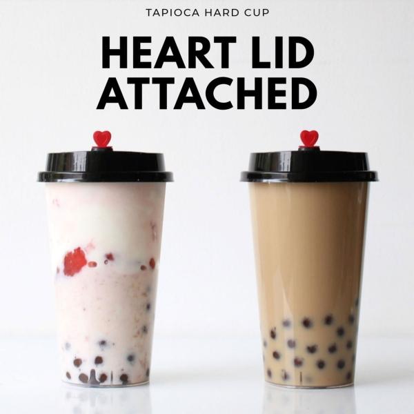 テイクアウト プラコップ 蓋 フタ付き タピオカ ハードPP プラカップ &ハートピック黒蓋 おしゃれ 100個セット EC141