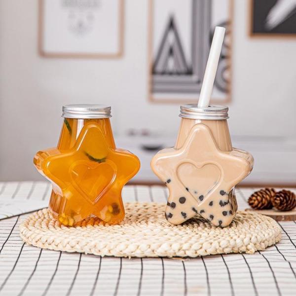 50個セット ドリンクボトル 300ml フタ付き 星型 プラカップ テイクアウト用 クリアカップ 蓋付き 穴あり 穴なし 使い捨て 業務用 可愛い