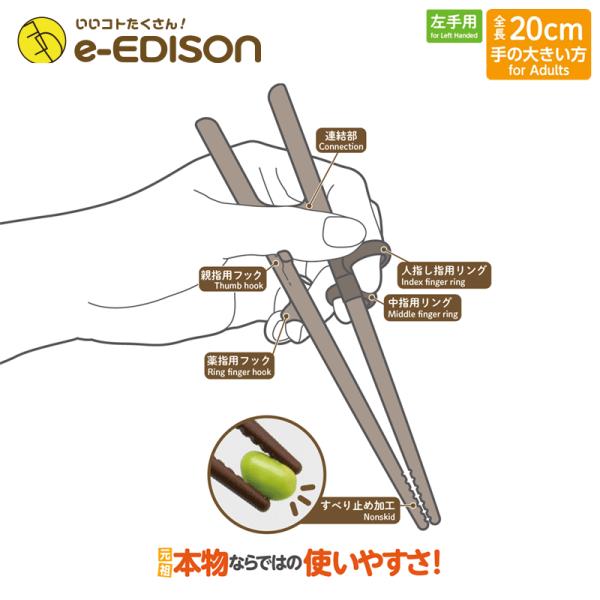 EDISON エジソンのお箸3 トレーニング箸 【左手用】 大人用 左利き キッチン カトラリー 正しい持ち方 矯正箸 エジソン箸 リハビリ 介護用 練習用箸 お箸練習
