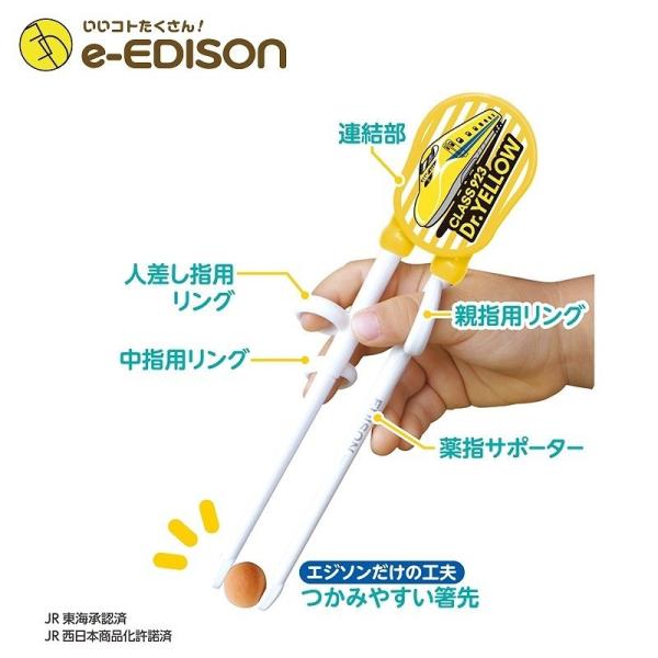 EDISON エジソン 新幹線 カトラリーセット【923形Dr.YELLOW(右手用)お箸+フォークスプーン】エジソンのお箸 トレーニング箸 エジソン箸 しつけばし 入園入学