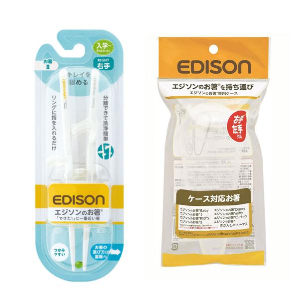 EDISON エジソンのお箸II 【専用ケース付き】右手用 トレーニング箸 練習用箸 しつけ箸 おはし エジソン箸 矯正用箸 カトラリー 子ども用食器 お箸練習 入園入学