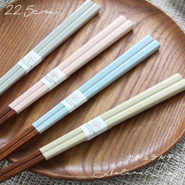 郵送で送料無料 食洗機対応 お箸 ナチュラルデイ 22.5cm(グレー・ブルー・ピンク・ベージュ) 国産 若狭塗