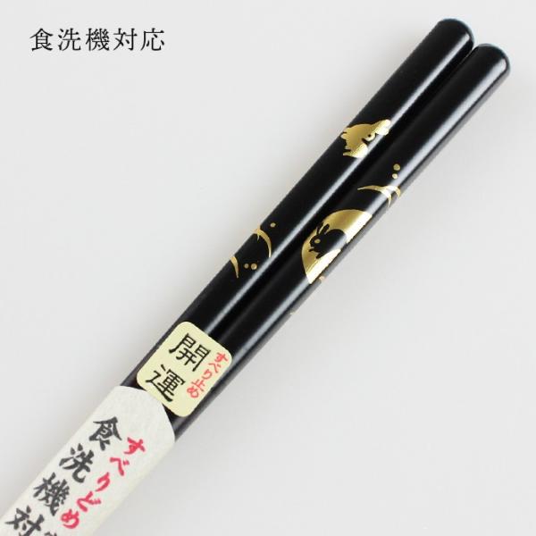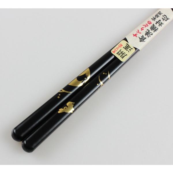 郵送で送料無料 食洗機対応 お箸 開運箸 月うさぎ 黒 23cm ひらの伊 国産 若狭塗