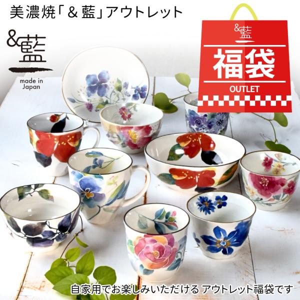 食器 和食器 福袋 2026 美濃焼「&藍」訳あり お任せ10点 アウトレット福袋 送料無料 新生活 食器セット レディース 入れ替え 来客 ブランド 花柄 セラミック藍