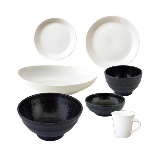 【Amazo-set】一人暮らし用 定番食器セット 日本製 食器 セット 磁器 白い食器 シンプル スタンダード 新生活 単身 白 黒 食器set