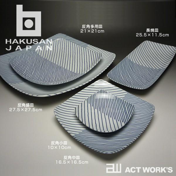 白山陶器 重ね縞 反角中皿 16.5cm 白磁 森正洋 波佐見焼 食器 ディナー パーティー 中皿 平皿 角皿