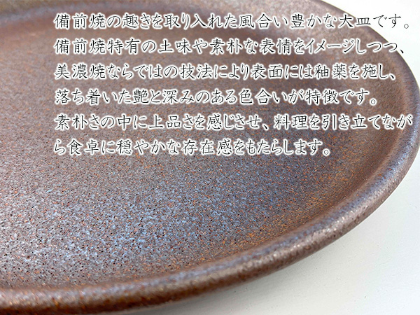 【特価品】大皿 27cm 備前風 特大皿 盛皿 赤茶備前 日本製 美濃焼 和食器 赤茶色 ブラウン 艶なし 和モダン ワンプレート とんかつ 盛り合わせ 渋い 丸