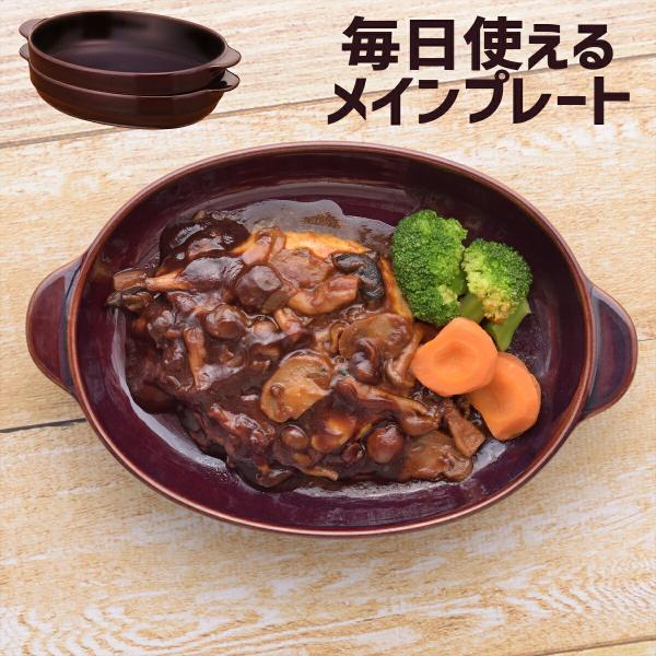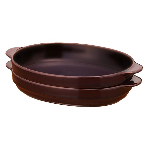 グラタン皿 毎日使える メインプレート 2枚組 オーバル 食器 皿 器 プレート 耐熱皿 耐熱容器 スタッキング 取っ手付き オーブン対応 アメ色 パスタ皿 カレー皿