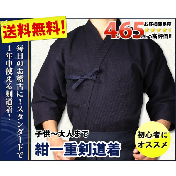 [剣道屋] 紺色 綿100% 一重 剣道着 【5文字無料 ワンポイント刺繍無料】(子供〜大人用) ★竹刀ワックス付 ●紺一重 剣道着