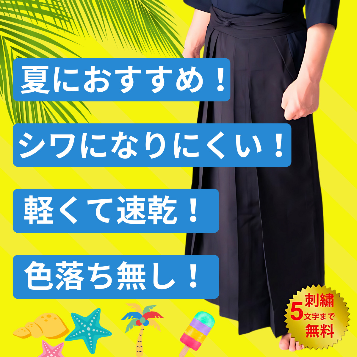剣道 袴「武蔵」柔らかジャージ袴 夏用 薄手 軽量 涼しい 紺 刺繍ネーム5文字まで無料 送料無料(北海道・沖縄除く)
