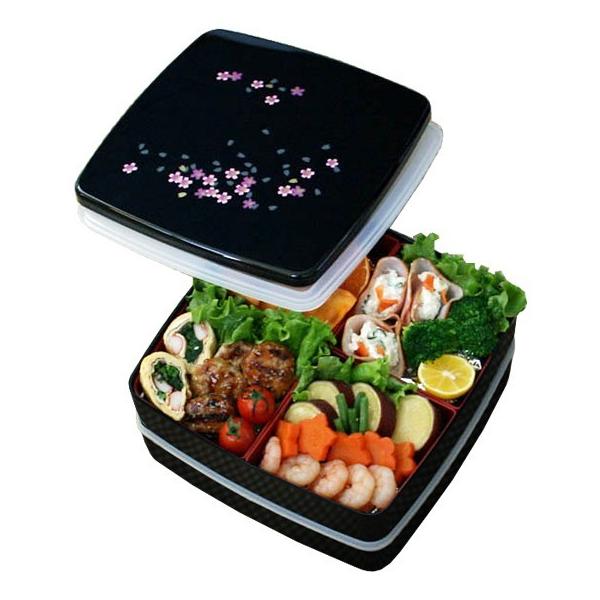 重箱 おしゃれ 二段 桜 黒塗 運動会 お正月 お花見 001-181