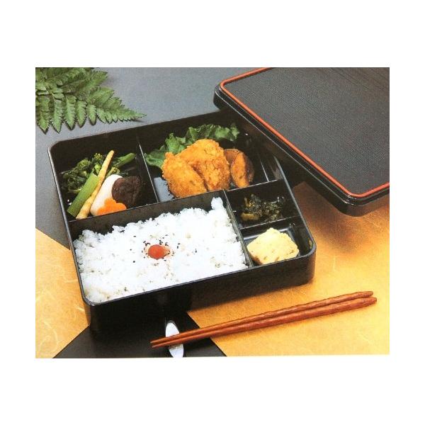 弁当箱 7寸 角ヘギ目弁当 黒天朱(固定仕切) f8-779-10