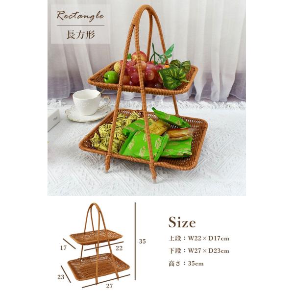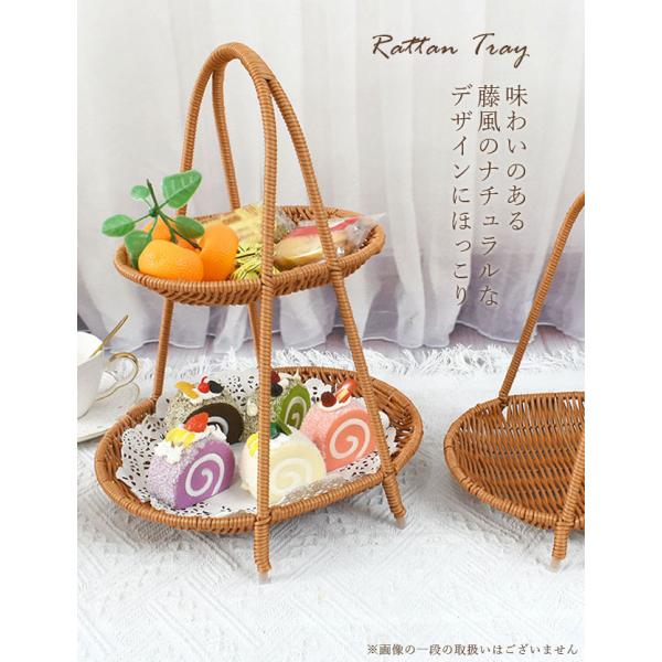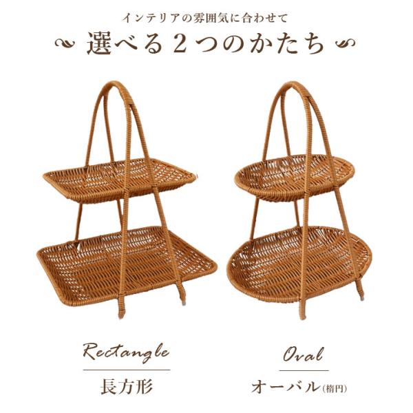 ラタン トレー 2段 長方形 楕円 トレイ バスケット かご アフヌーンティースタンド ラタン風 籐風 収納 ラック インテリア ディスプレイ GPT(gu1c242) 送料無料