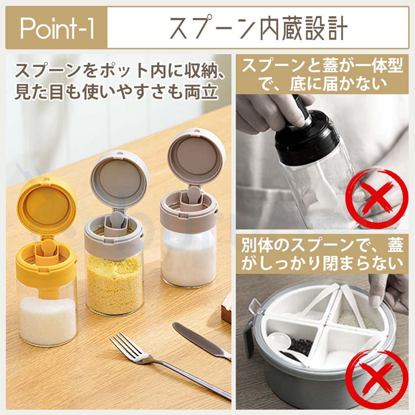【2個目半額!】 調味料入れ 調味料ポット 調味料入れ 密閉 調味料入れ スプーン付き 2in1 調味料ふり 調味料ボトル 調味缶 スパイスボトル 塩 コショウ
