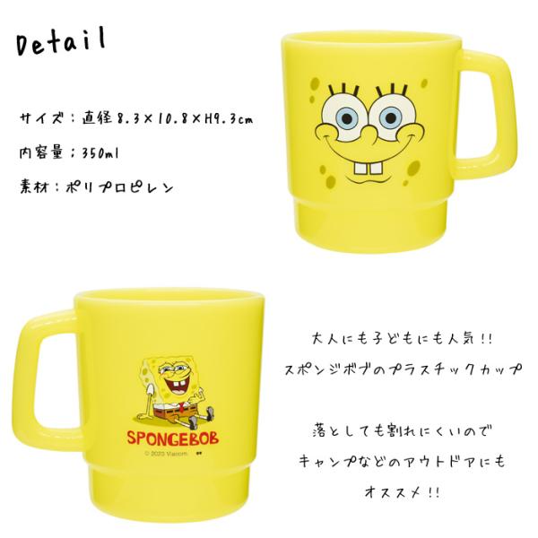 スポンジボブ プラスチック コップ 350ml 日本製 スタッキング うがい用 洗面具 ランチグッズ アウトドア アメリカン雑貨 プレゼント ダブルスリー