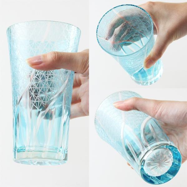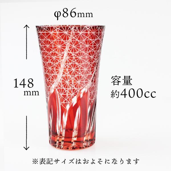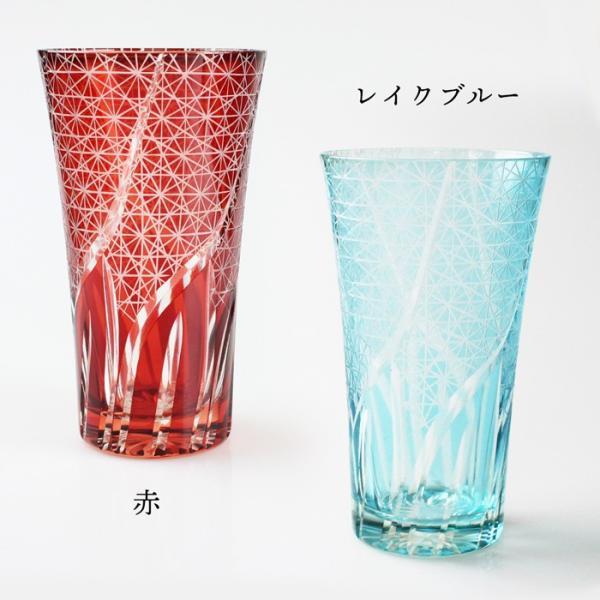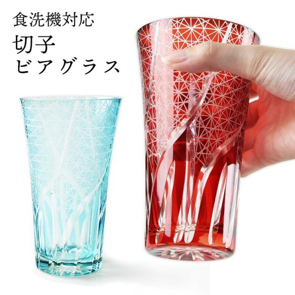 切子 ビアグラス (赤・レイクブルー) 食洗機対応 (切子硝子 切子ガラス カットグラス)