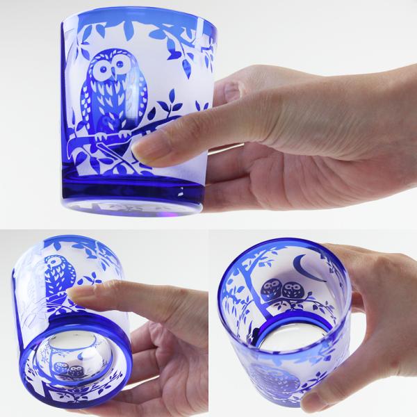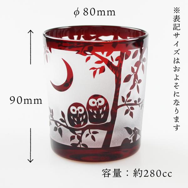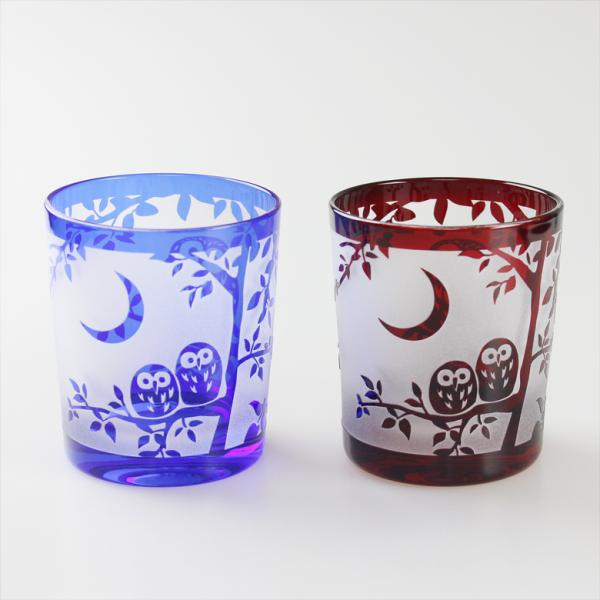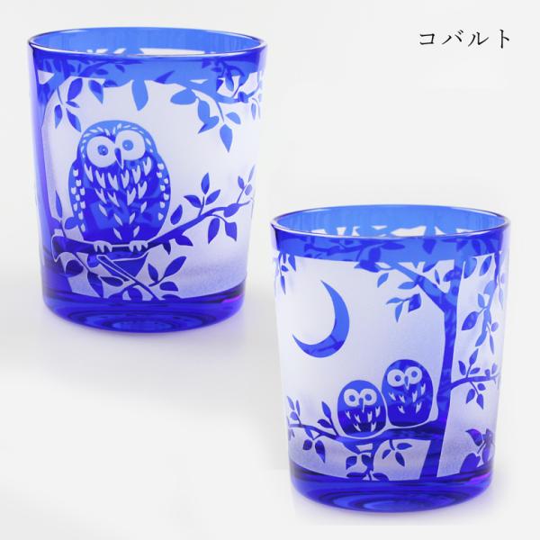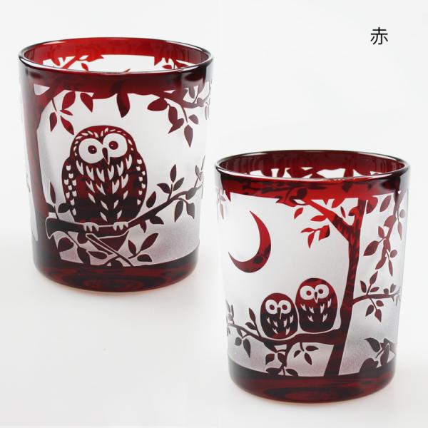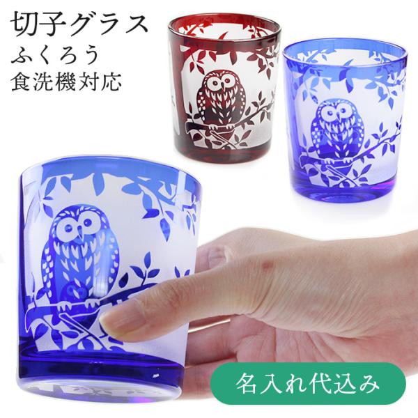 名入れ無料 切子 グラス オールド ふくろう 2色から選べる(赤・コバルト) 食洗機対応 F35385/35386 桐箱入り可能 ギフト彫刻名入れ