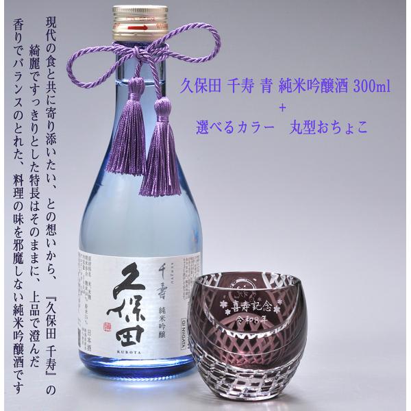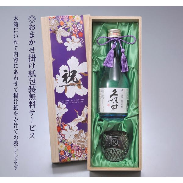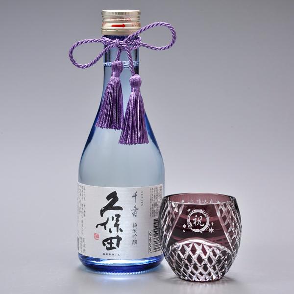 名入れ ギフト SXX 酒セット 切子 日本酒 久保田 千寿 純米吟醸 300ml & 丸型おちょこグラス タッセル紐付 木箱入り