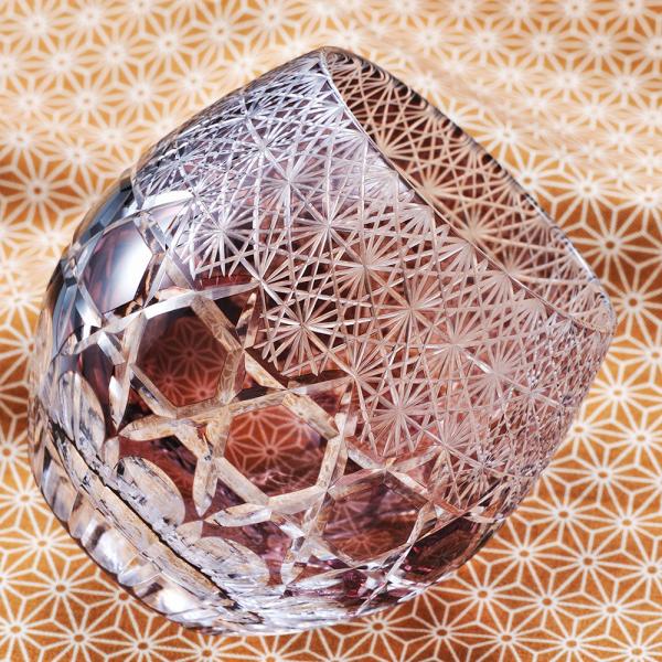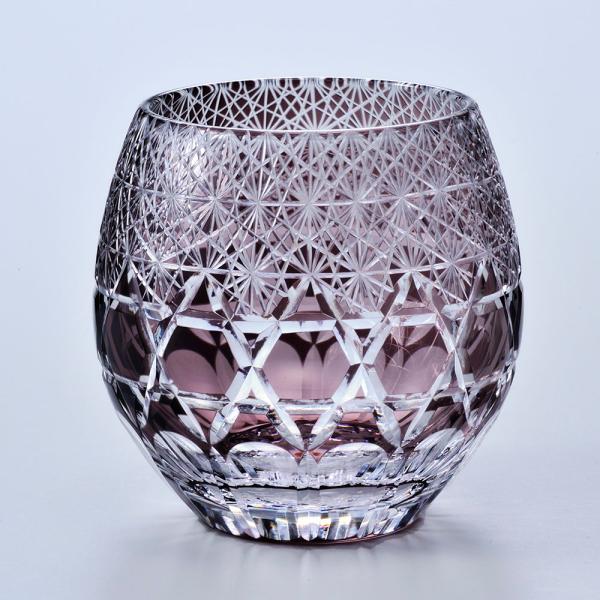 名入れ ギフト SXX 切子 丸型ロックグラス ブリリアントカット風 紫 木箱入り