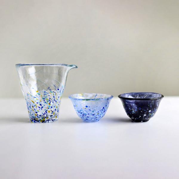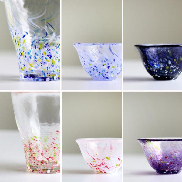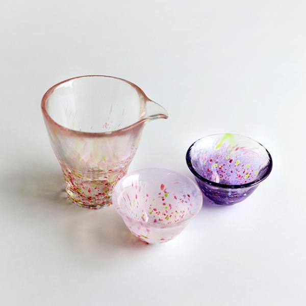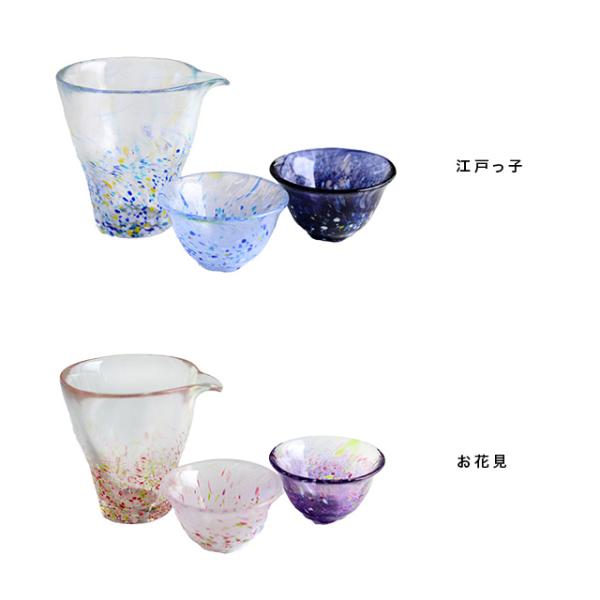 TOMICRAFT 江戸硝子 うきよ 花酒器セット(盃 徳利 おちょこ セット 結婚祝い ペア 日本酒 ぐい呑み 片口 お猪口 とっくり ギフト 贈り物 和風 食器 かわいい)