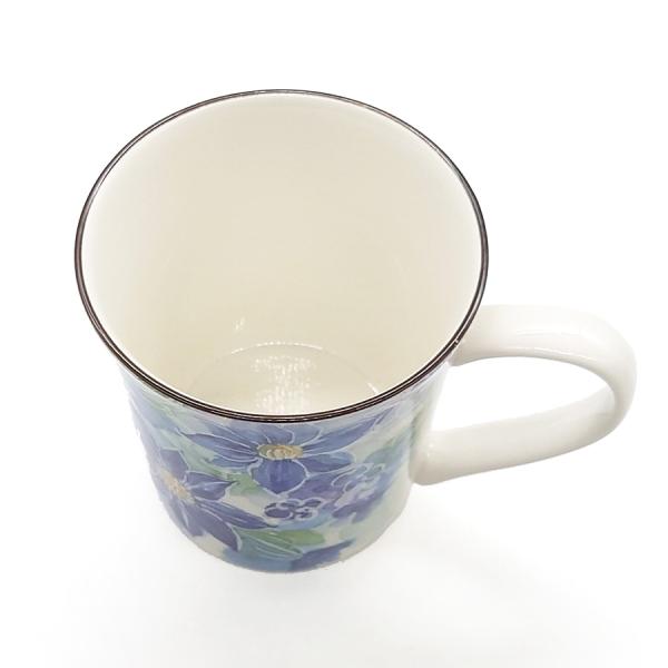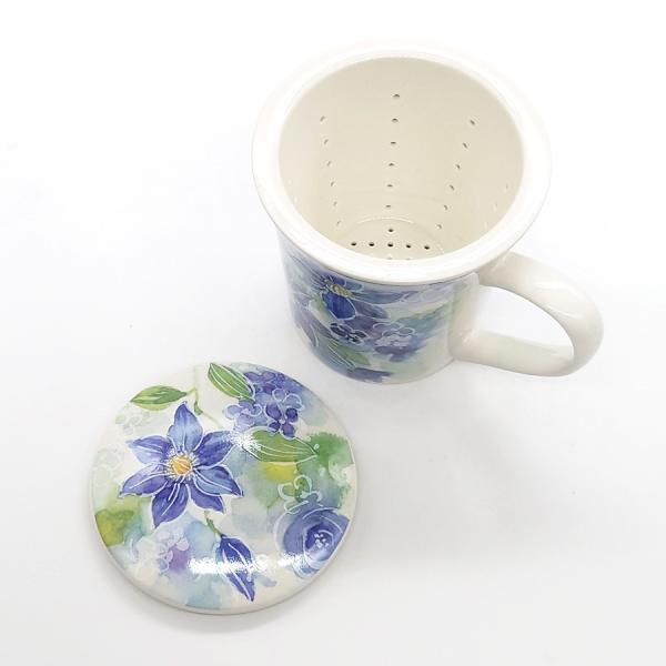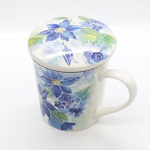 蓋付き マグカップ 陶器 茶こし付き 花あわせ クレマチス ブルー 青 おしゃれ 花柄 かわいい 焼き物 和食器 日本製