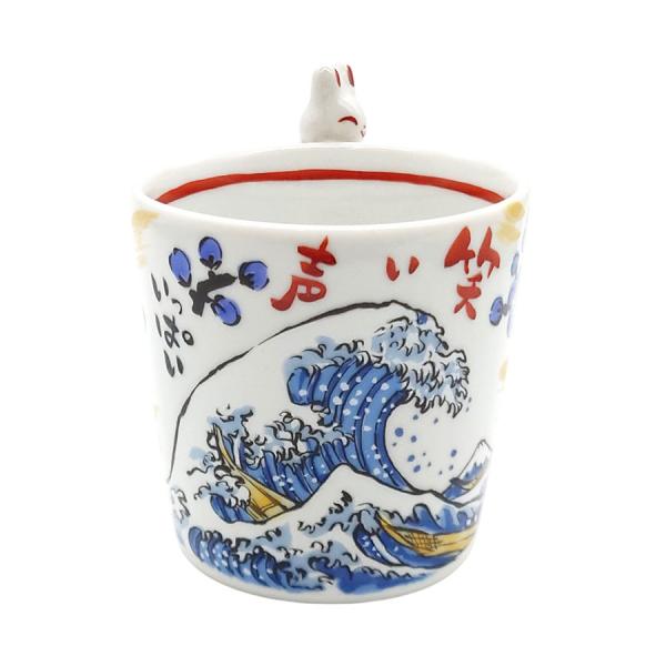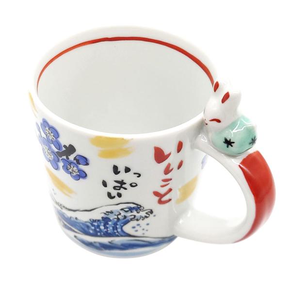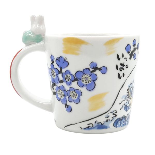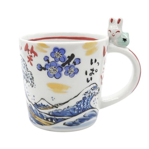 マグカップ うさぎ 夕立窯 江戸の旅 うさぎやすみ 青 海波 富士山 北斎 桜 陶器 日本製 手作り 手描き メッセージ かわいい おしゃれ