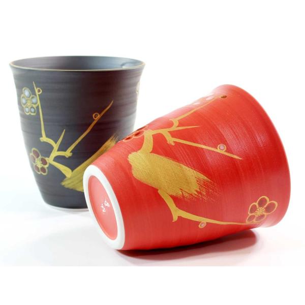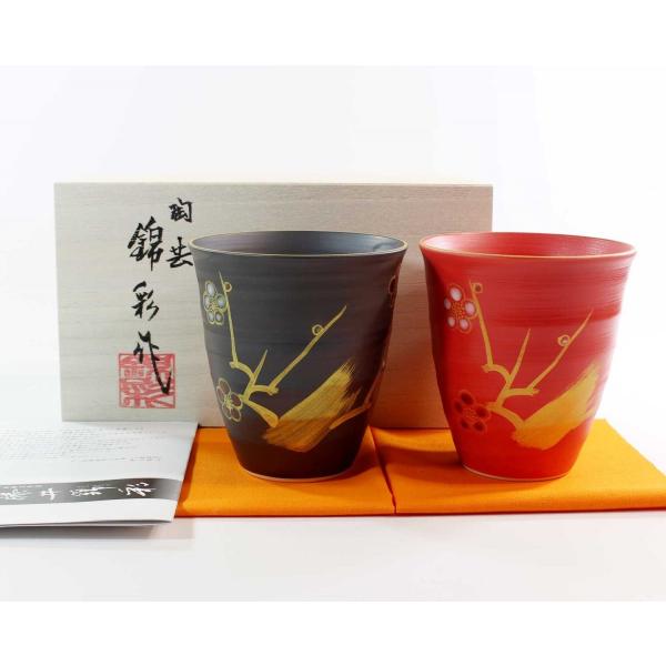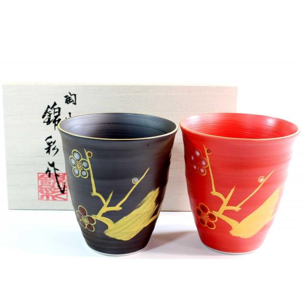 有田焼 陶芸家 藤井錦彩作 窯変金彩梅絵フリーカップペアセットB
