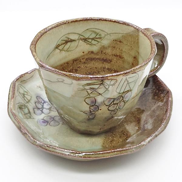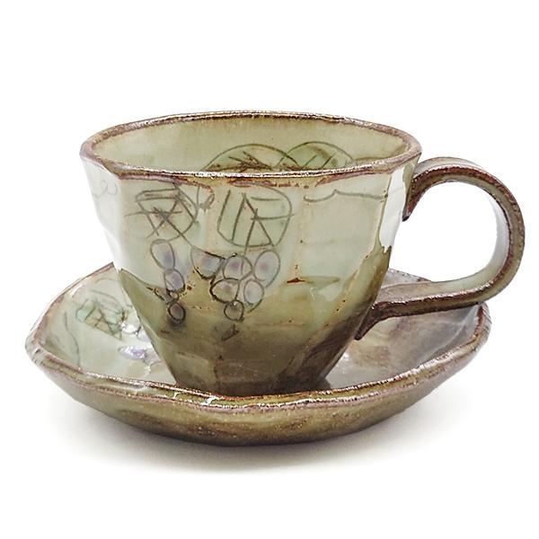 美濃焼 コーヒーカップ ぶどう おしゃれ カップ&ソーサー 商売繁盛 縁結び 陶器 和食器 焼き物 日本製 かわいい