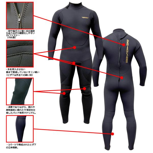 2026 RASH JB BACK ZIP TYPE FULL SUIT / ラッシュ バックジップ 3.5mm ALL ウェットスーツ サーフィン ジャージ フルスーツ 春秋用
