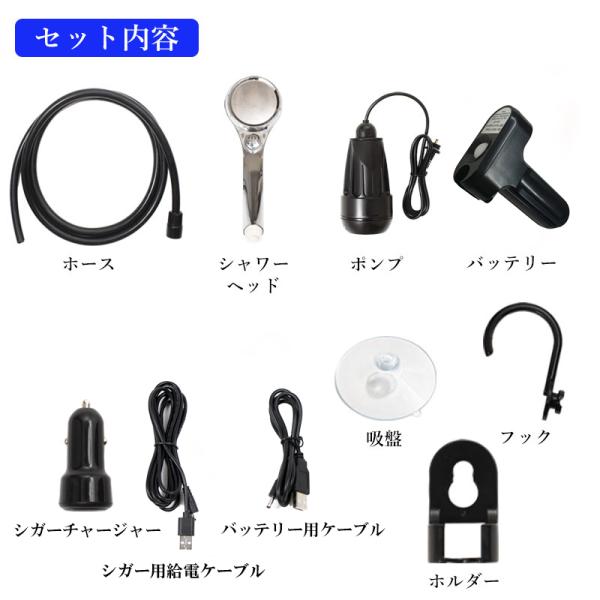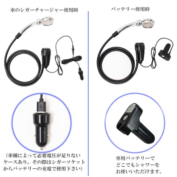 MAGNA(マグナ) ポータブルシャワー 電動シャワー USB充電式 シガーソケット 2WAY 大容量 2200mAh 60分 スタミナ運転 シャワーヘッド止水機能付き