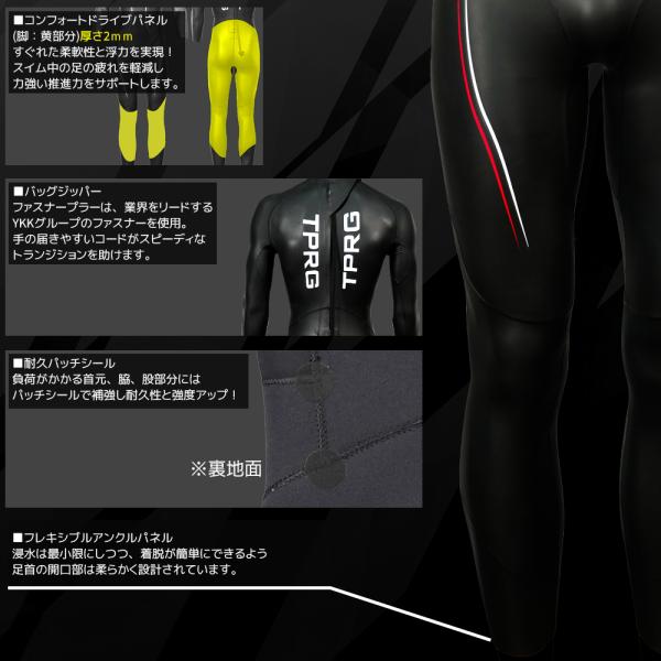 ウェットスーツ TPRG 3×2mm メンズ ロングジョン フルスーツ プロ仕様 大会用 3mm 2mm バックジップ ラバー ストレッチ クラシック スキン トライアスロン