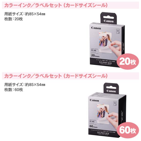 キャノン セルフィー QX 専用 用紙 カラーインク ラベルセット カードサイズ シール 20枚 XC-20L / SELPHY QXシリーズ用 シール用紙 カード