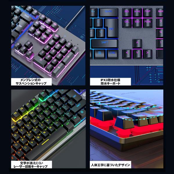 ゲーミングキーボード マウスセット [GX300] 有線 使いやすい 打ちやすい 104キー バックライト ゲーム 光る キーボード ブラック ホワイト 送料無料