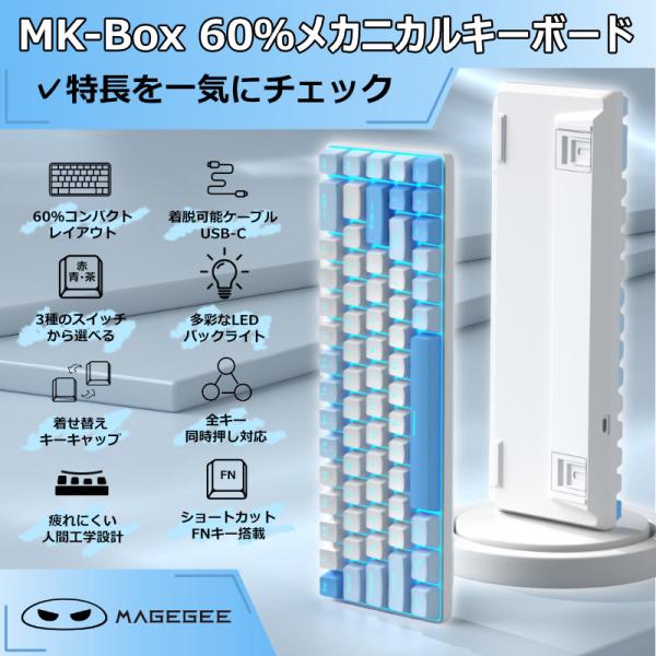 MageGee マギジー ポータブル 60% メカニカル ゲーミング キーボード 8種のバリエーション 赤軸 青軸 茶軸 MK-BOX メカニカルキーボード LED