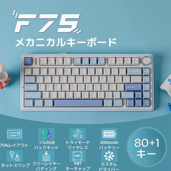 【新品/即納】 EPOMAKER x AULA F75 メカニカルキーボード ゲーミング 75% テンキーレス ワイヤレス Bluetooth 2.4G 有線 ホットスワップ対応 英語配列 RGB