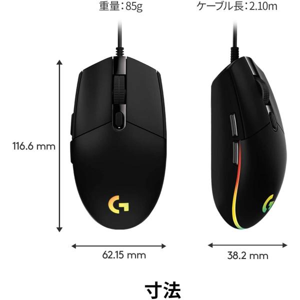 Logitech G ゲーミングマウス 有線 G102 LIGHTSYNC RGB 6個プログラムボタン 85g軽量 G102-BK (Logitech G102 IC PRODIGY 後継機)1年保証 海外リテール品