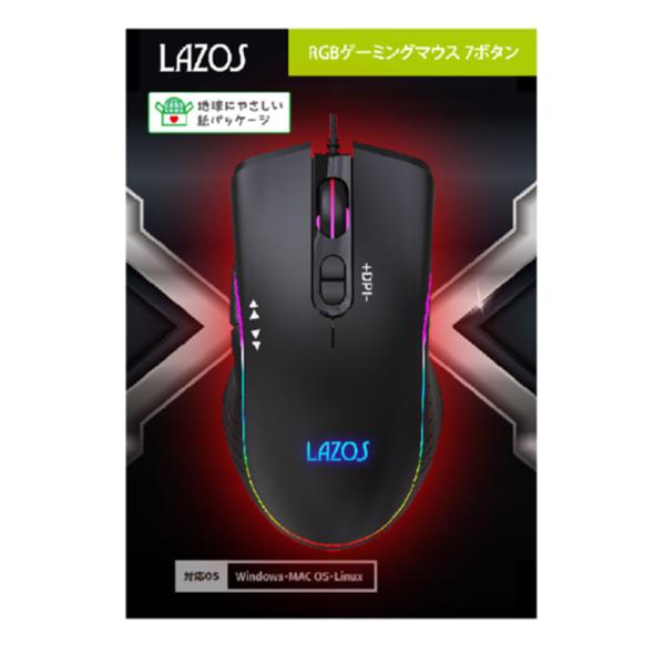 Lazos (L-MSG7-B) RGBゲーミングマウス 7ボタン ブラック