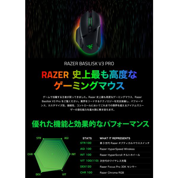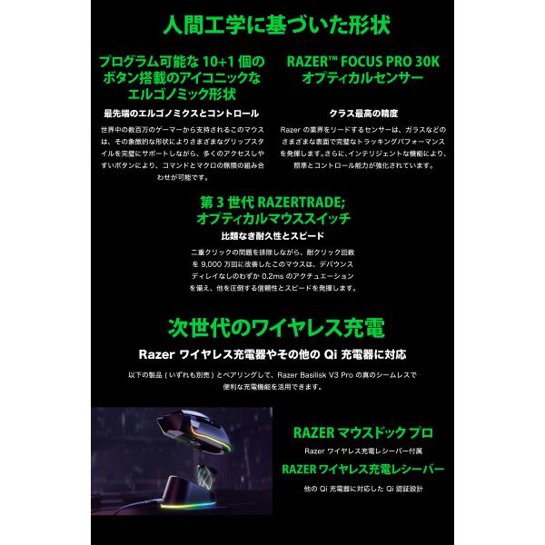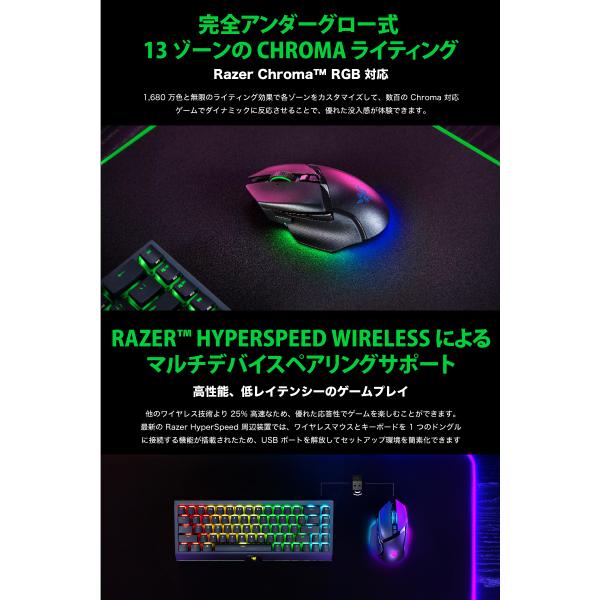 Razer レーザー Basilisk V3 Pro 有線 / Bluetooth 5.0 / 2.4GHz ワイヤレス 両対応 チルトホイール搭載 光学式 ゲーミングマウス rms23