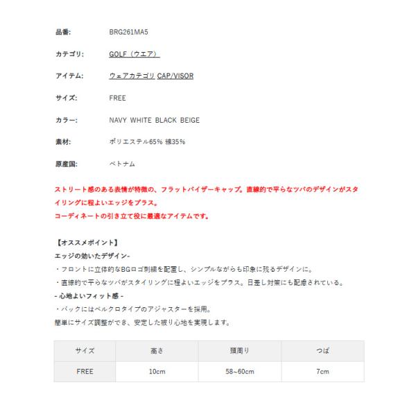 ブリーフィング ゴルフ キャップ メンズ 平つば フラットバイザー 帽子 サイズ調節 アジャスター ゴルフウェア ロゴ ブランド BRIEFING GOLF BRG261MA5