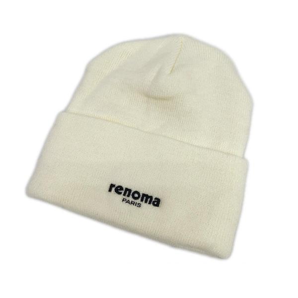 coco 中古【値下げ】 レノマ renoma ニット帽 フリー ホワイト 白 ワッチ ビーニー シンプル ネコポス発送可 K015842