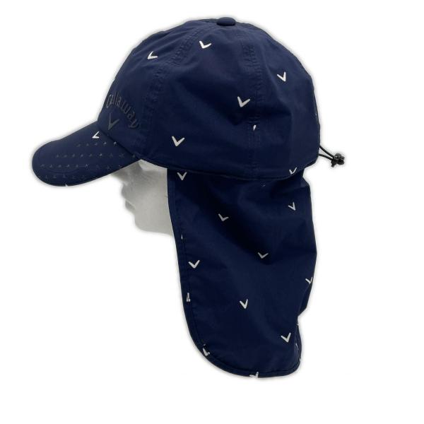 coco 中古【値下げ】キャロウェイCallaway レインキャップ フリー ネイビー ロゴ総柄 雨よけシェード付き レターパックプラス発送可K0648