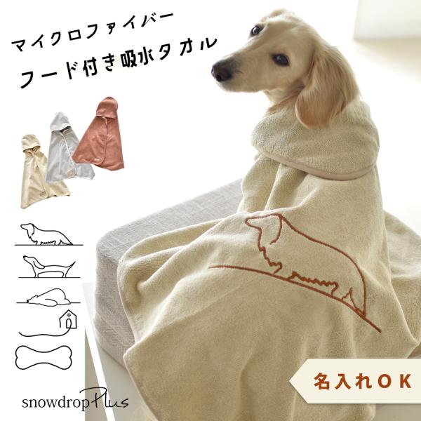 刺繍デザイン フードタオル 名入れ 刺繍 犬用 ペット用タオル 夏 マイクロファイバー 吸水速乾 ふわふわ バスローブ オリジナル 1点のみゆうパケット対応